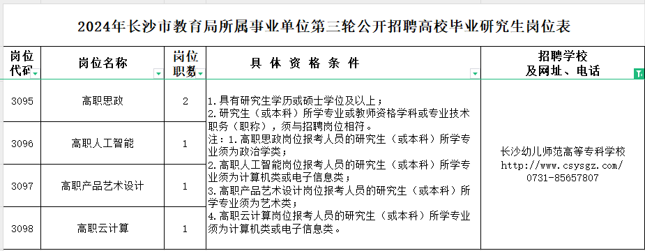 1.《2024年长沙市教育局所属事业单位第三轮公开招聘高校毕业研究生岗位表》